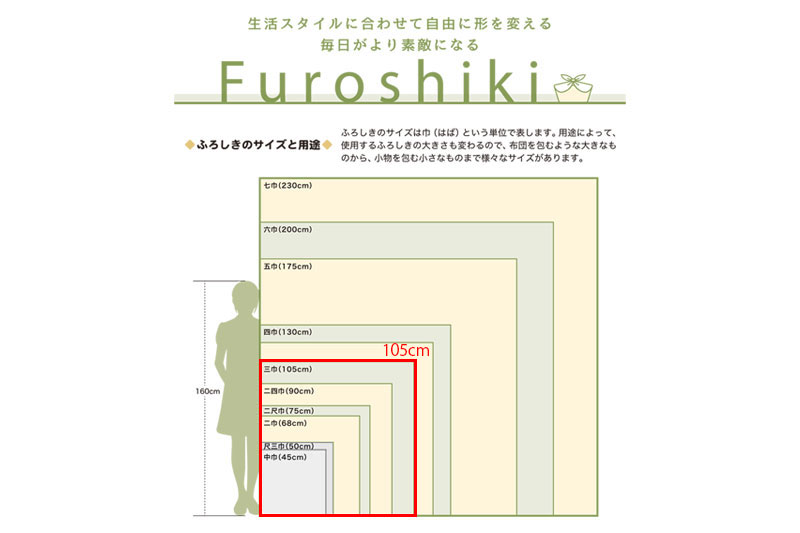 さまざまなシーンで使い分けのできる風呂敷として、幅広くお使いいただけます。