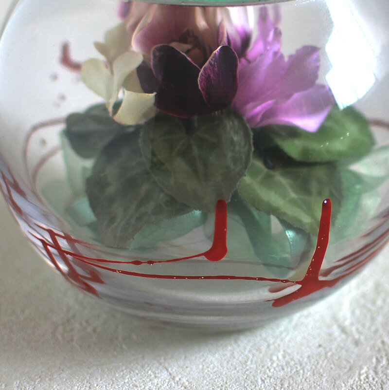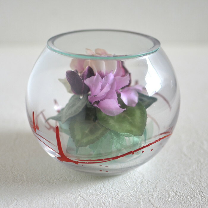 訳あり理由:ガラスに若干の曇り 【訳あり】ボトルフラワー シクラメンラウンド型 黒江塗(赤) ボトルフラワーとは、生のお花を1輪1輪シリカゲル強制乾燥法でドライ加工した後、ボトル(ガラス)の中にアレンジし密封したものです。
