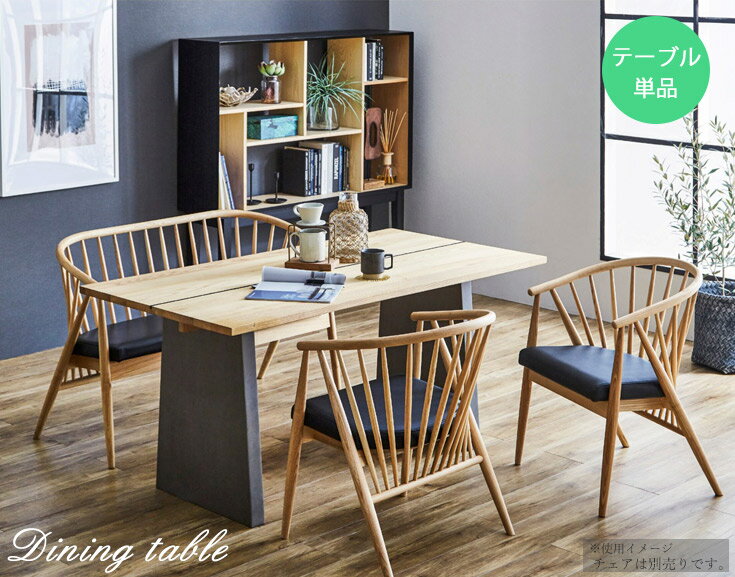 ダイニングテーブル 幅155cm(単品) 【サイズ】幅155cm×奥行き80cm×高さ70cm 【材 質】天板/アッシュ無垢、脚/MDFコンクリート塗装 【カラー】ナチュラル 【備 考】輸入品・組立品 【送 料】無料(※北海道・東北・沖縄・離島等の一部地域を除く) 【商品紹介】 無垢材の自然と温かみを感じられる天板とコンクリート塗装の脚という異素材を組み合わせた、おしゃれなダイニングテーブル。
