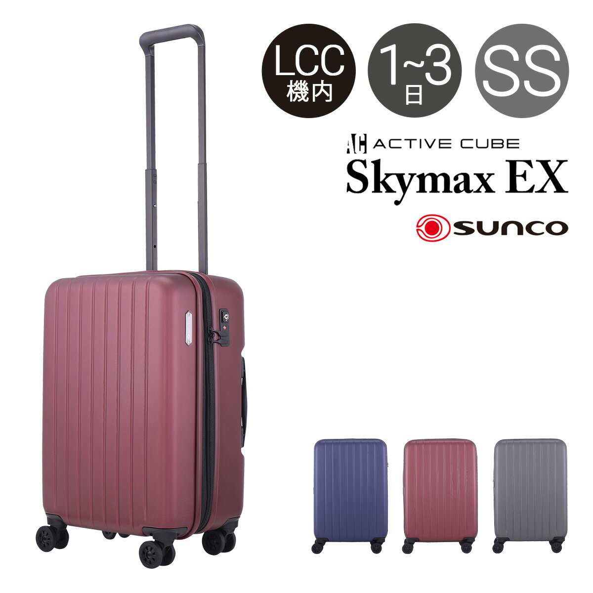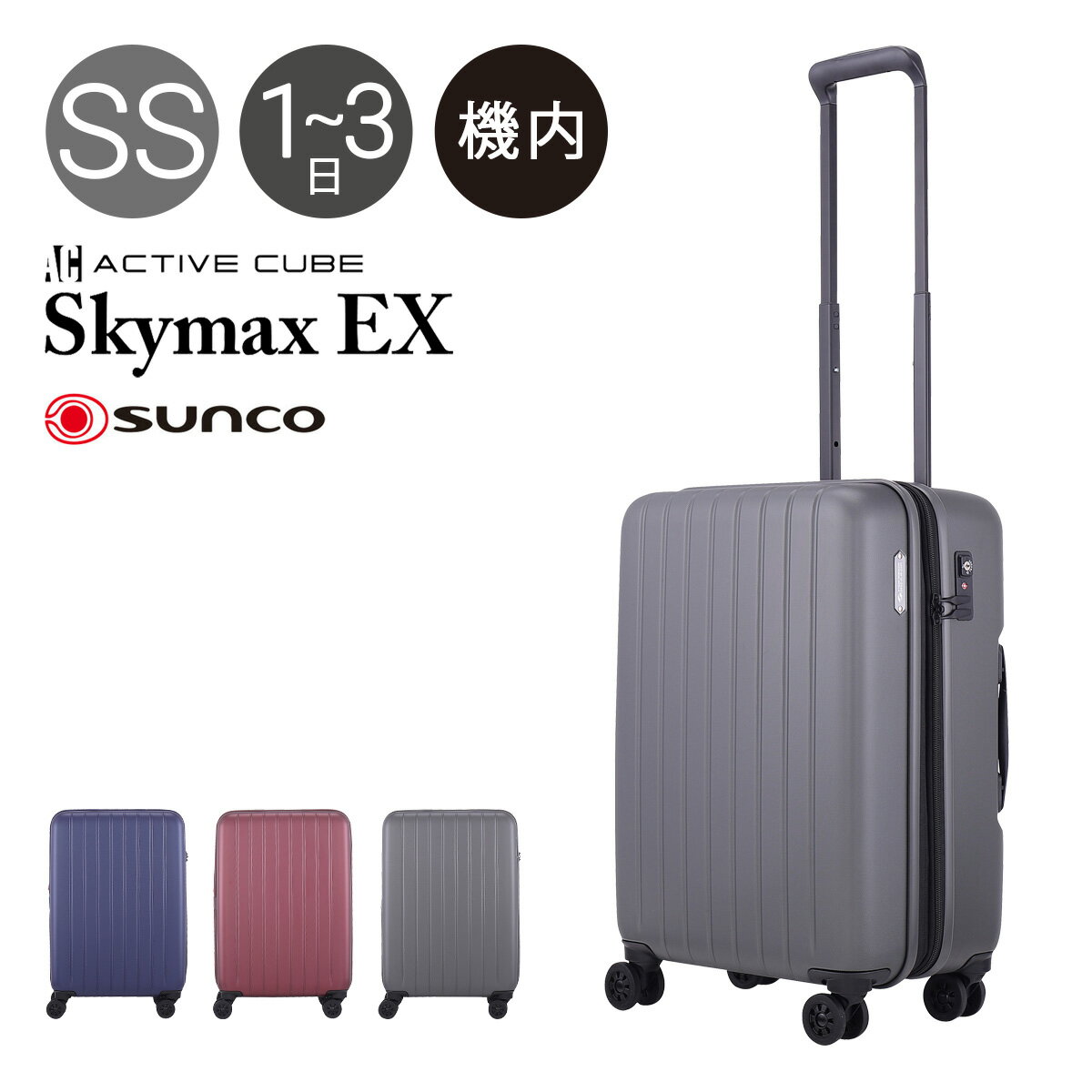 サンコー スーツケース 41L 46cm 2.5kg ハード ファスナー 機内持ち込み LCC スカイマックスEX メンズ レディース ACSE-46 SUNCO | キャリーケース 拡張 軽量 静音 TSAロック搭載 HINOMOTO[bef][PO10]
