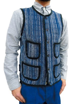 ギフト対応SAMURAIJEANS(サムライジーンズ)藍絣刺し子ベスト! 手作業で藍綛染めをした二重ビーム雨絣刺し子ベストです。